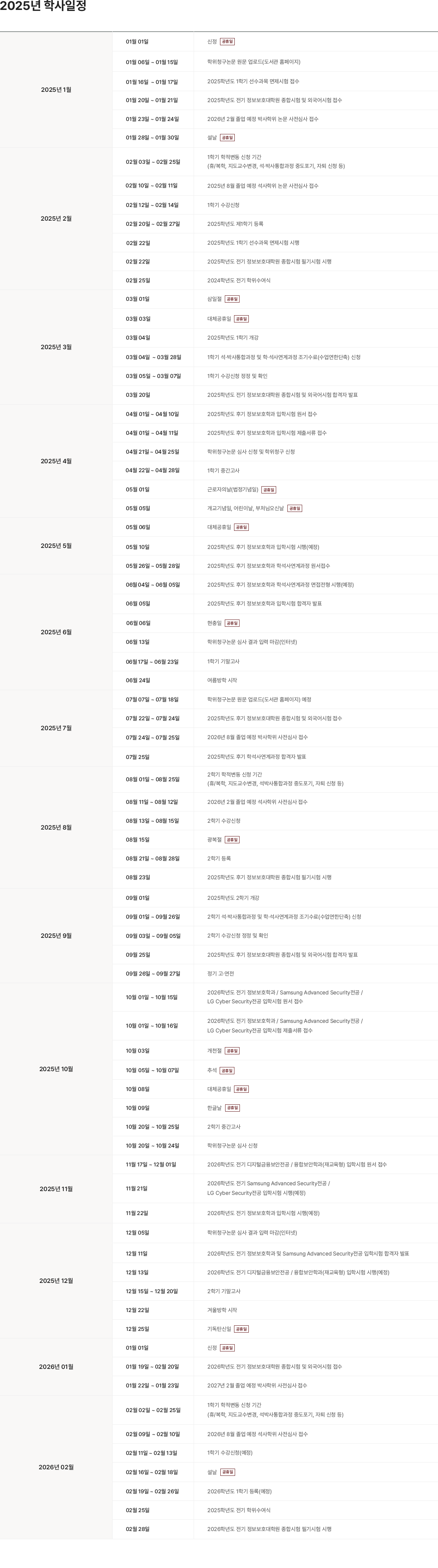 홈 > 대학원 > 정보보호대학원 > 학사일정