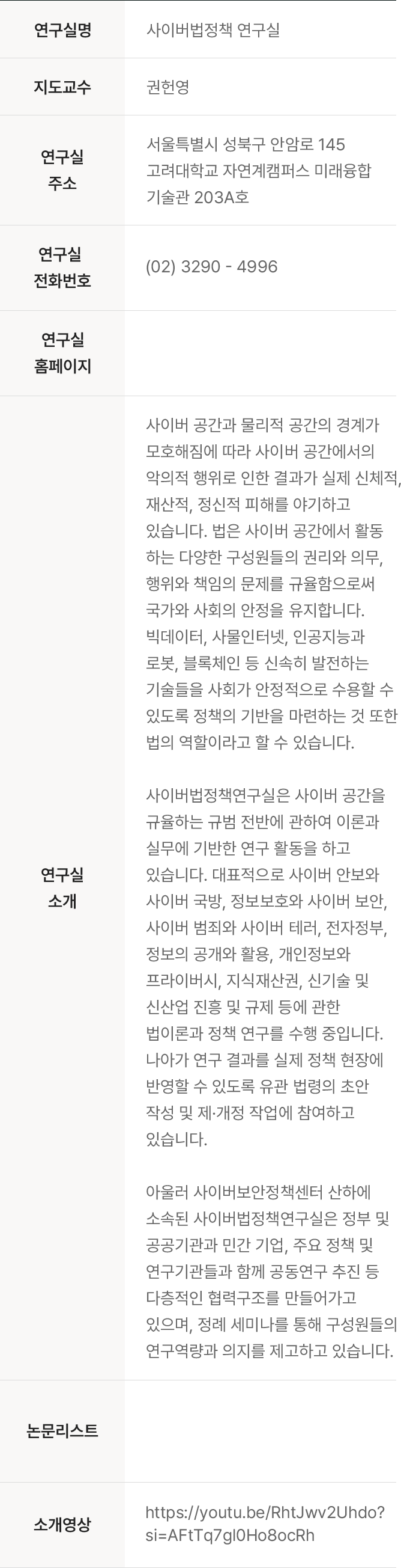홈 > 연구 > 연구실 > 사이버법정책