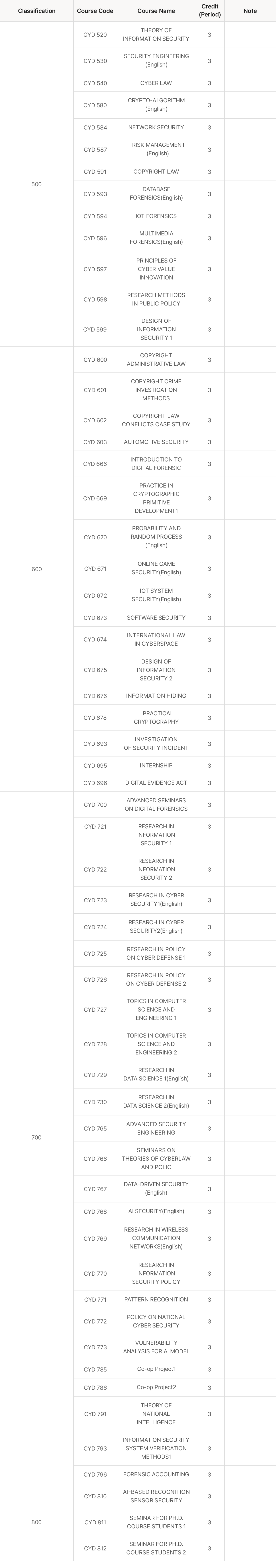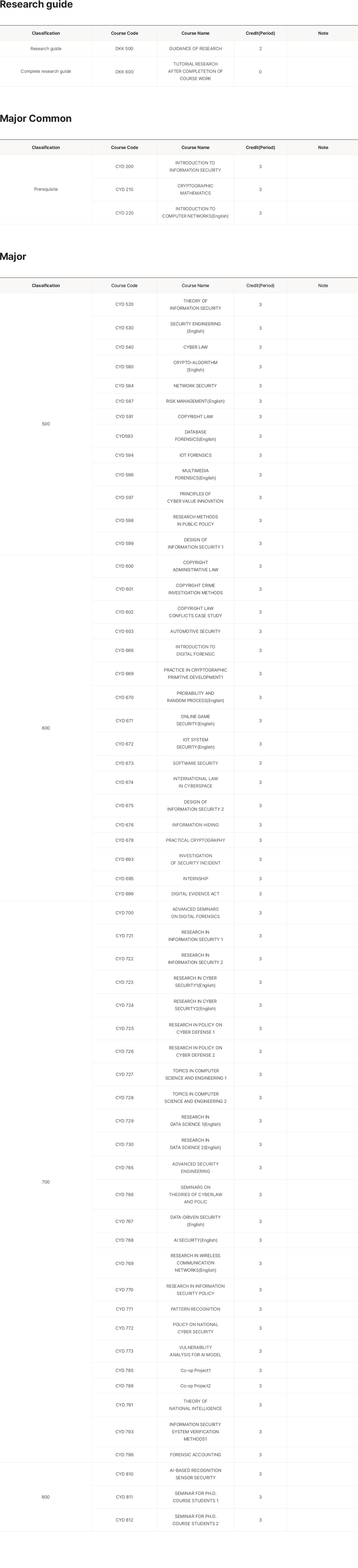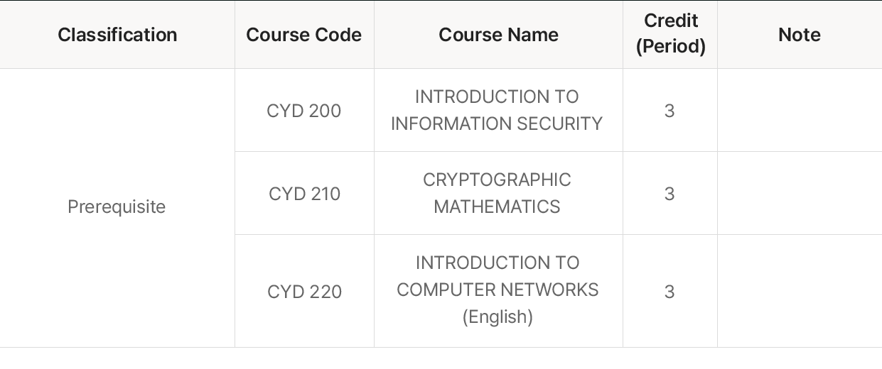 홈 > Graduate > Department of Cybersecurity in Graduate School > Curriculum