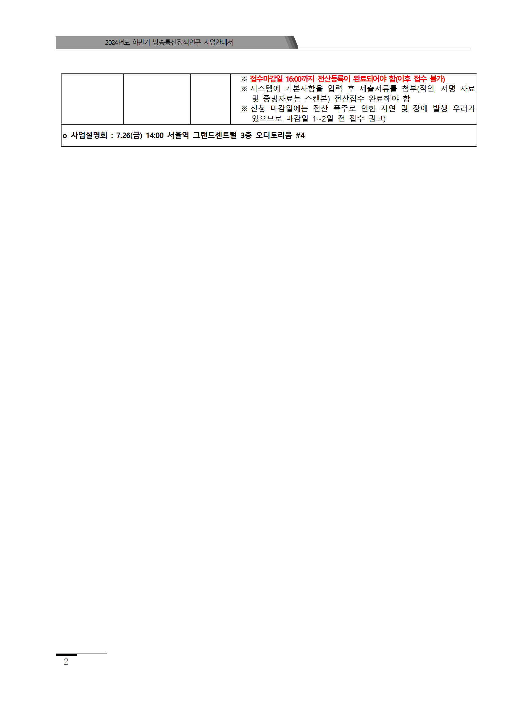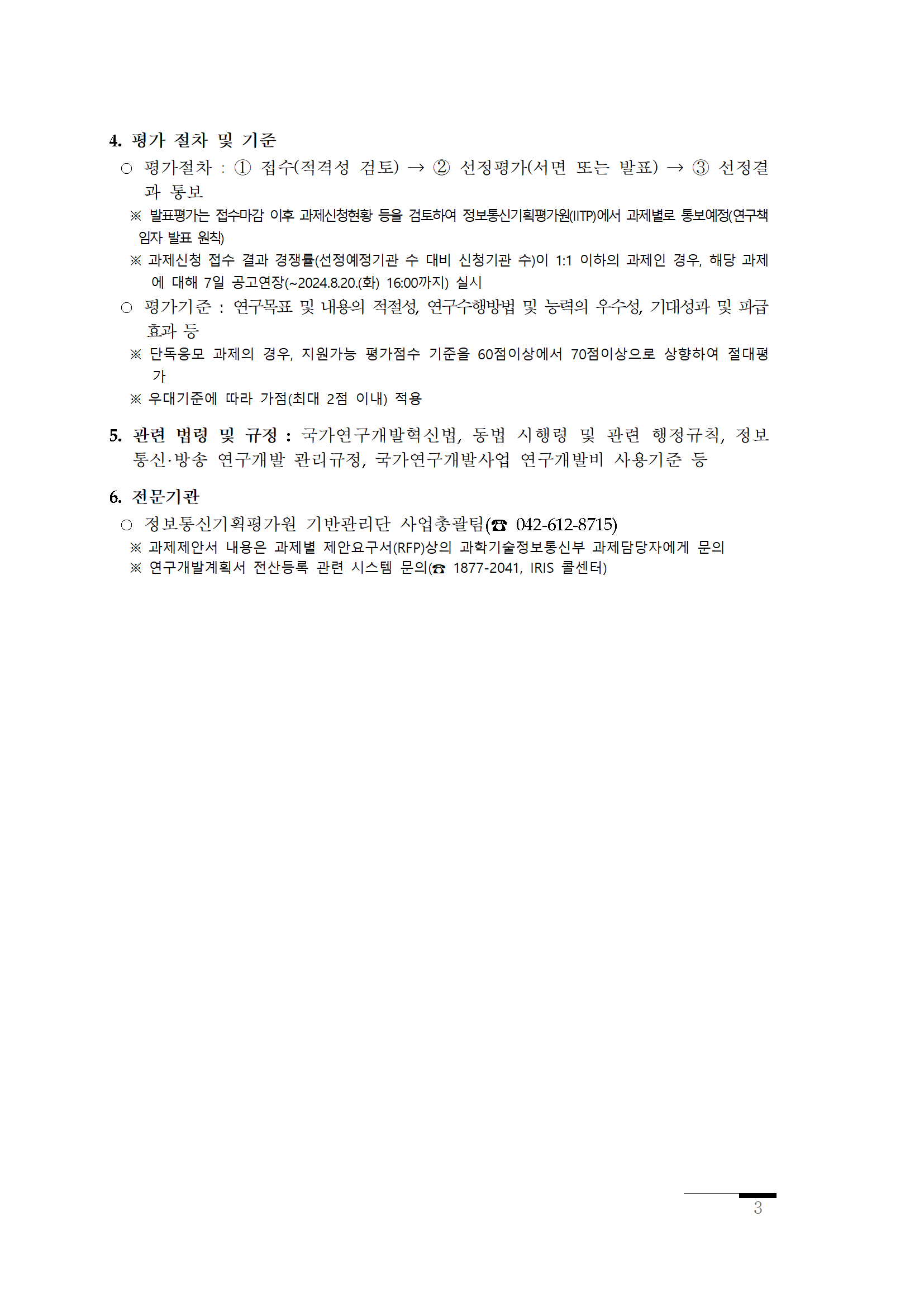 [과학기술정보통신부] 2024년 하반기 방송통신정책연구(R&D) 신규과제 공고 (~24.08.13) 정보보호대학원 2024-07-30 정보보호대학원 과제 공지 0 1531 2024.07.30 17:19 2024.07.30 17:19 붙임 1. 2024년 하반기 방송통신정책연구사업 공고문.hwp (471.0K) + 44 2024.07.30 17:19 붙임 2. 2024년 하반기 방송통신정책연구 사업안내서 및 별첨자료.zip (15.9M) + 19