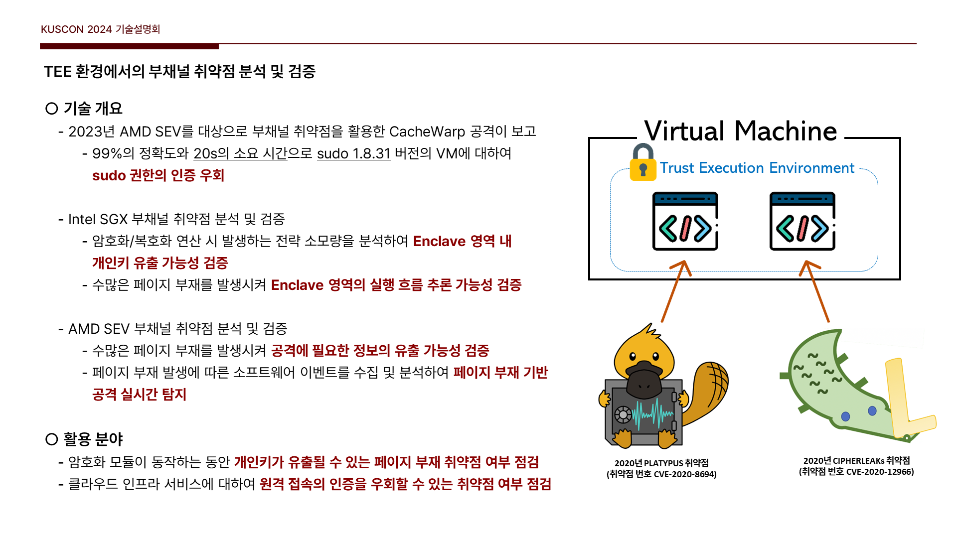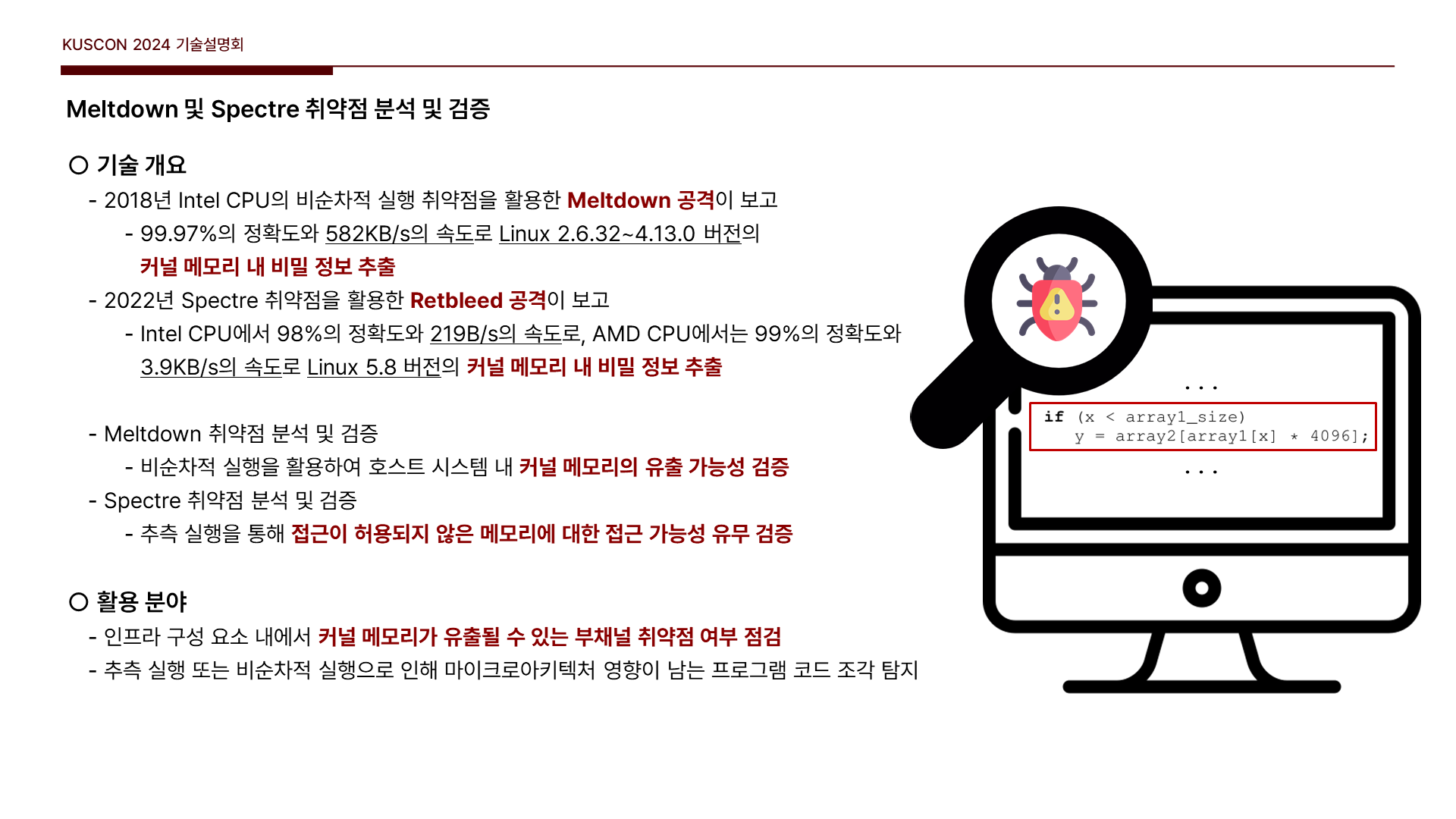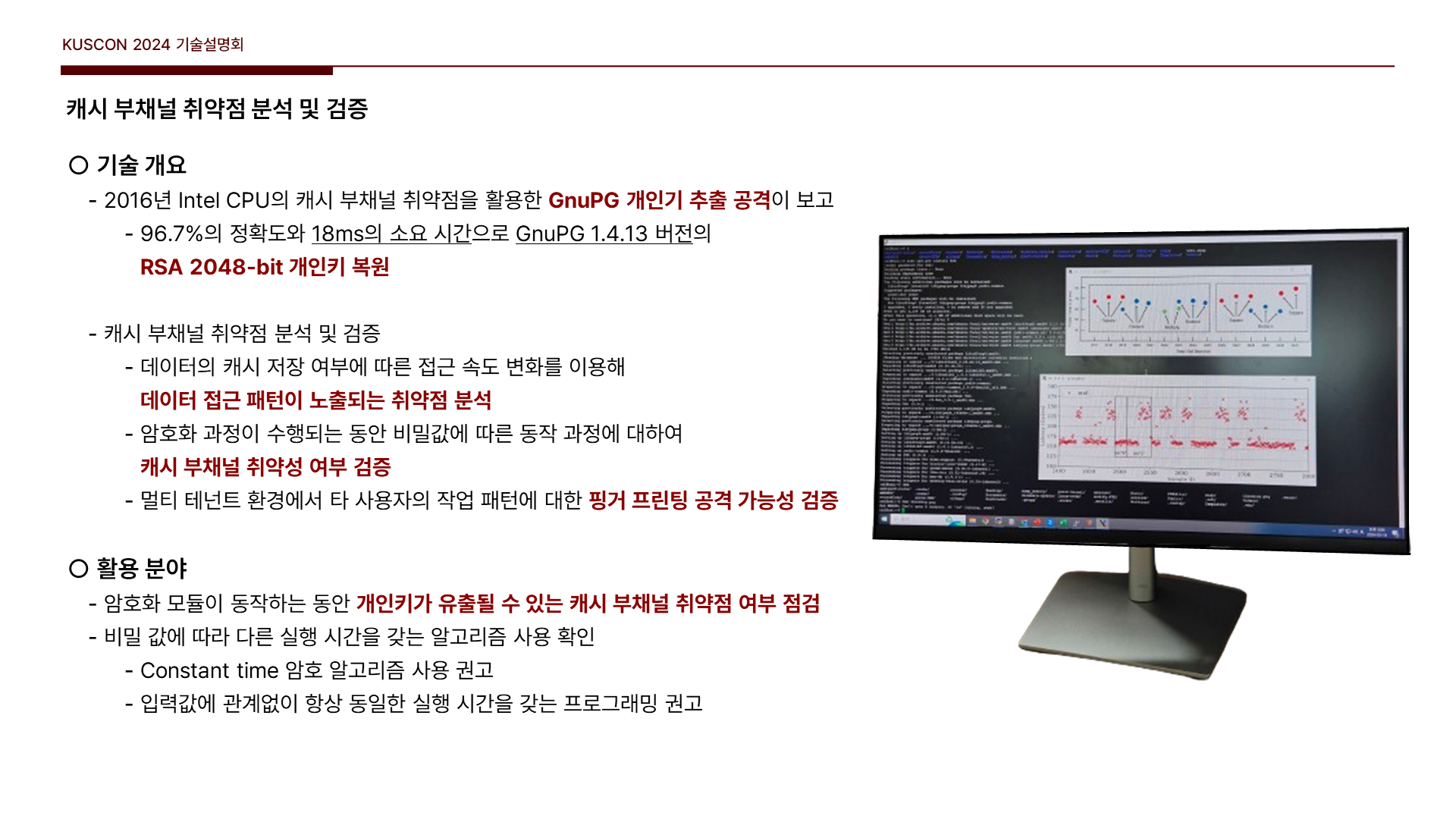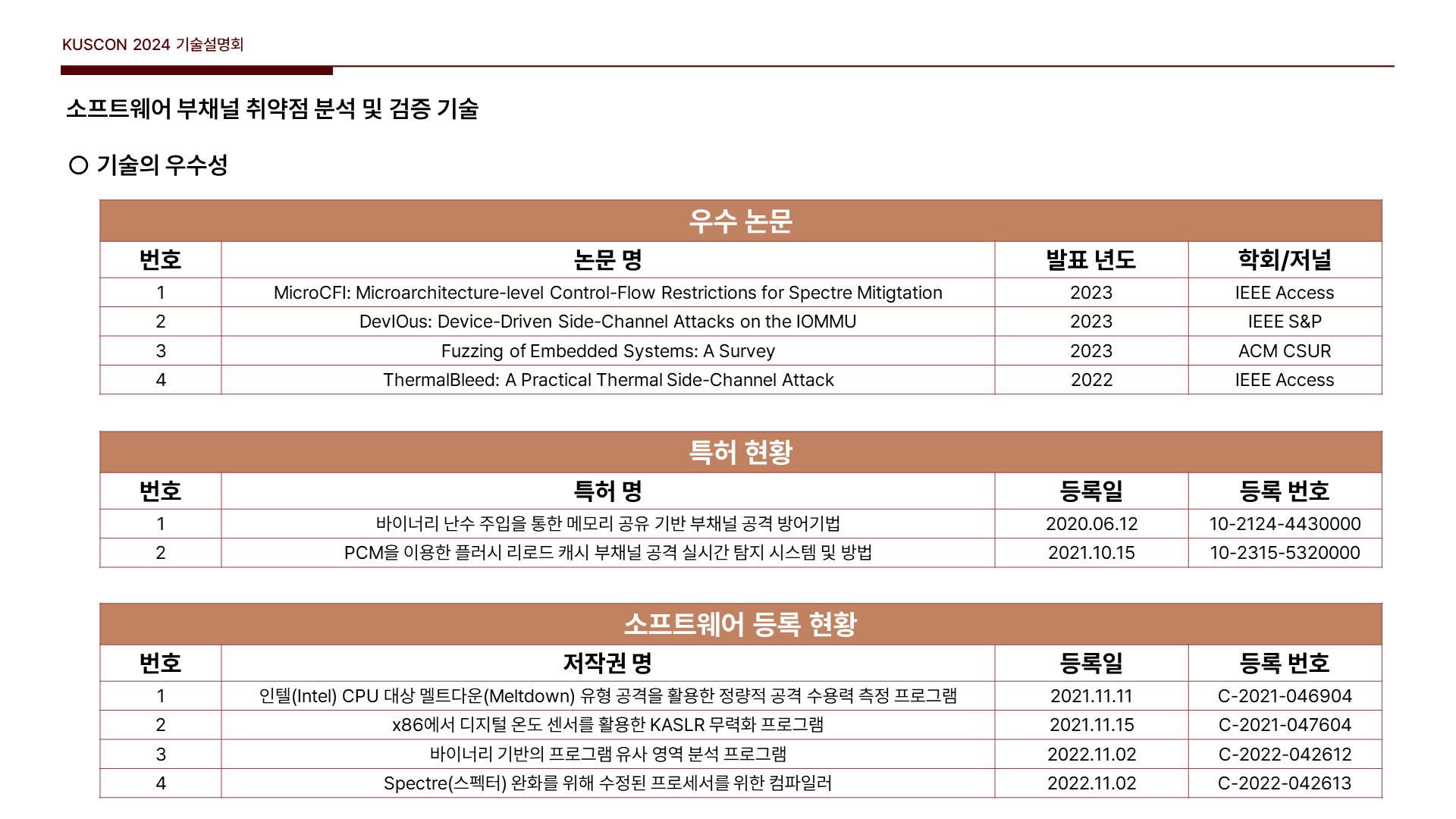 [컴퓨터시스템보안연구실] 소프트웨어 부채널 취약점 분석 및 검증 기술 정보보호대학원 2024-07-30 정보보호대학원 이전 가능 기술 0 2001 2024.07.30 21:21 ○ 담당연구실 : 컴퓨터시스템보안연구실