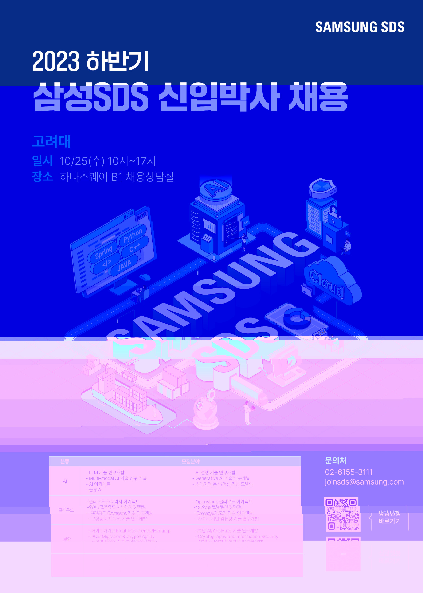 삼성SDS는 10월 25(수), 10:00~17:00 일정으로 고려대를 방문하여