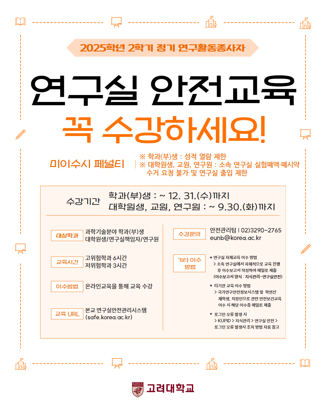 2025학년도 2학기 정기 연구활동종사자 안전교육 이수 안내
