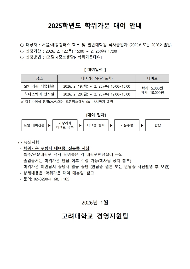 [학부] 2025학년도 학위가운 대여 안내 스마트보안학부 2026-01-29 스마트보안학부 스마트보안학부 0 1524 01.29 11:17 2026.01.29 11:17 2025학년도 학위가운 대여 매뉴얼.pdf (924.8K) + 39 2026.01.29 11:17 Graduation Gown Rental Manual.pdf (942.6K) + 10 .
