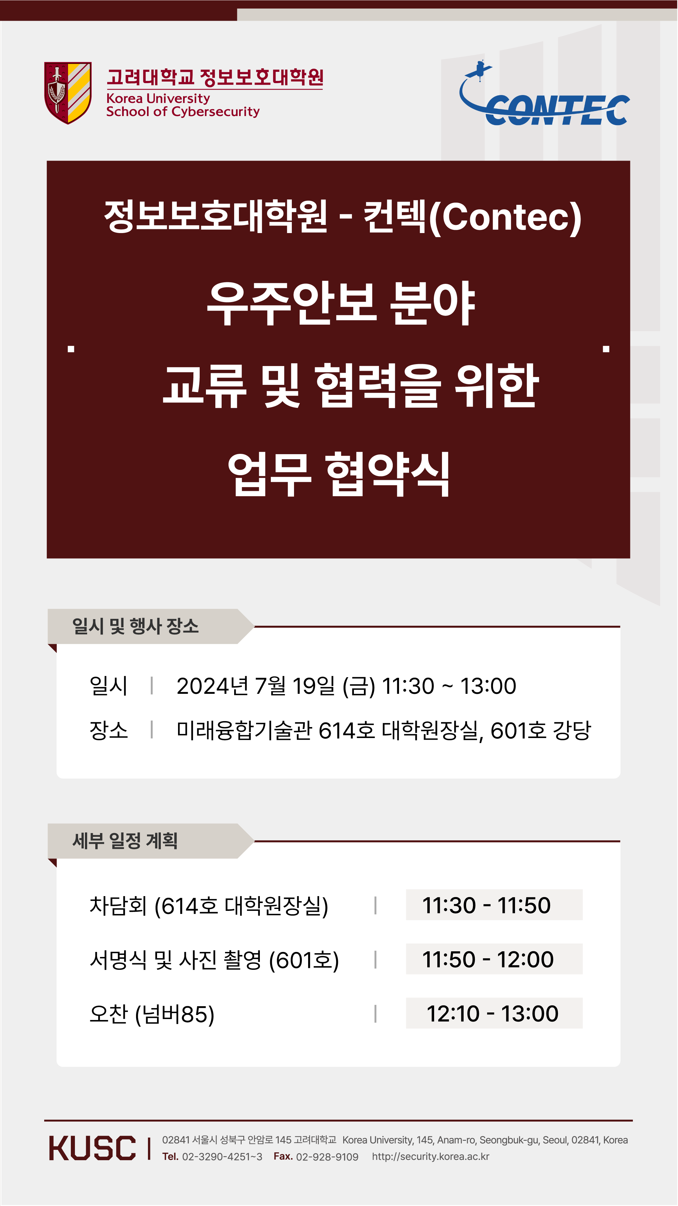 정보보호대학원-컨텍(Contec) 우주안보 분야 교류 및 협력을 위한 협약식