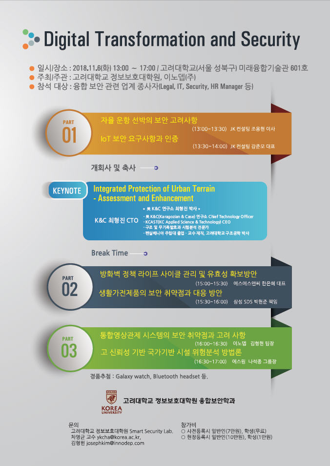 Digital Transformation and Scurity (2018.11.06) 정보보호대학원 2018-11-06 정보보호대학원 포스터 0 2183 2018.11.06 16:57