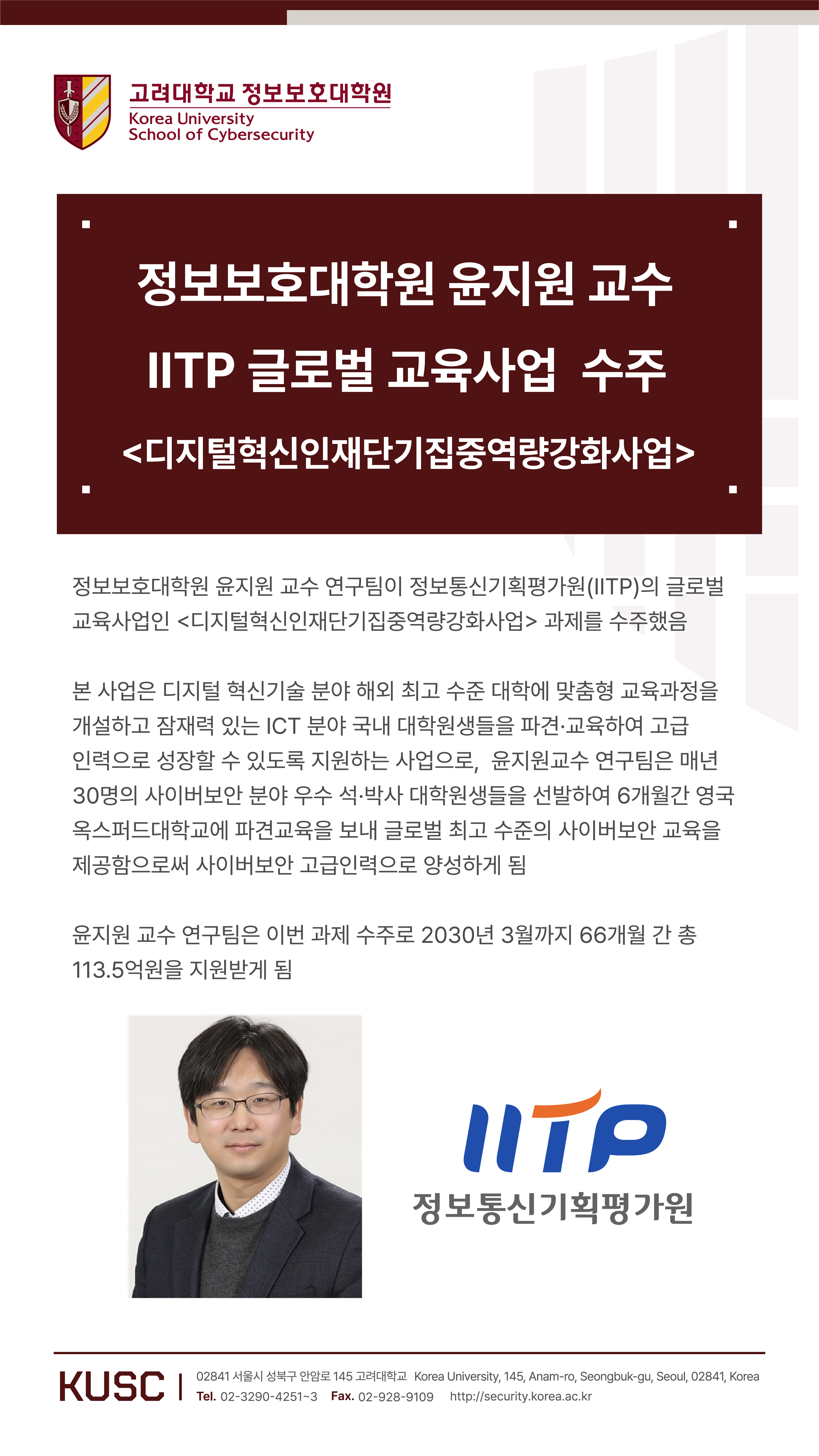 윤지원 교수, IITP 글로벌 교육사업 수주 : 디지털혁신인재단기집중역량강화사업