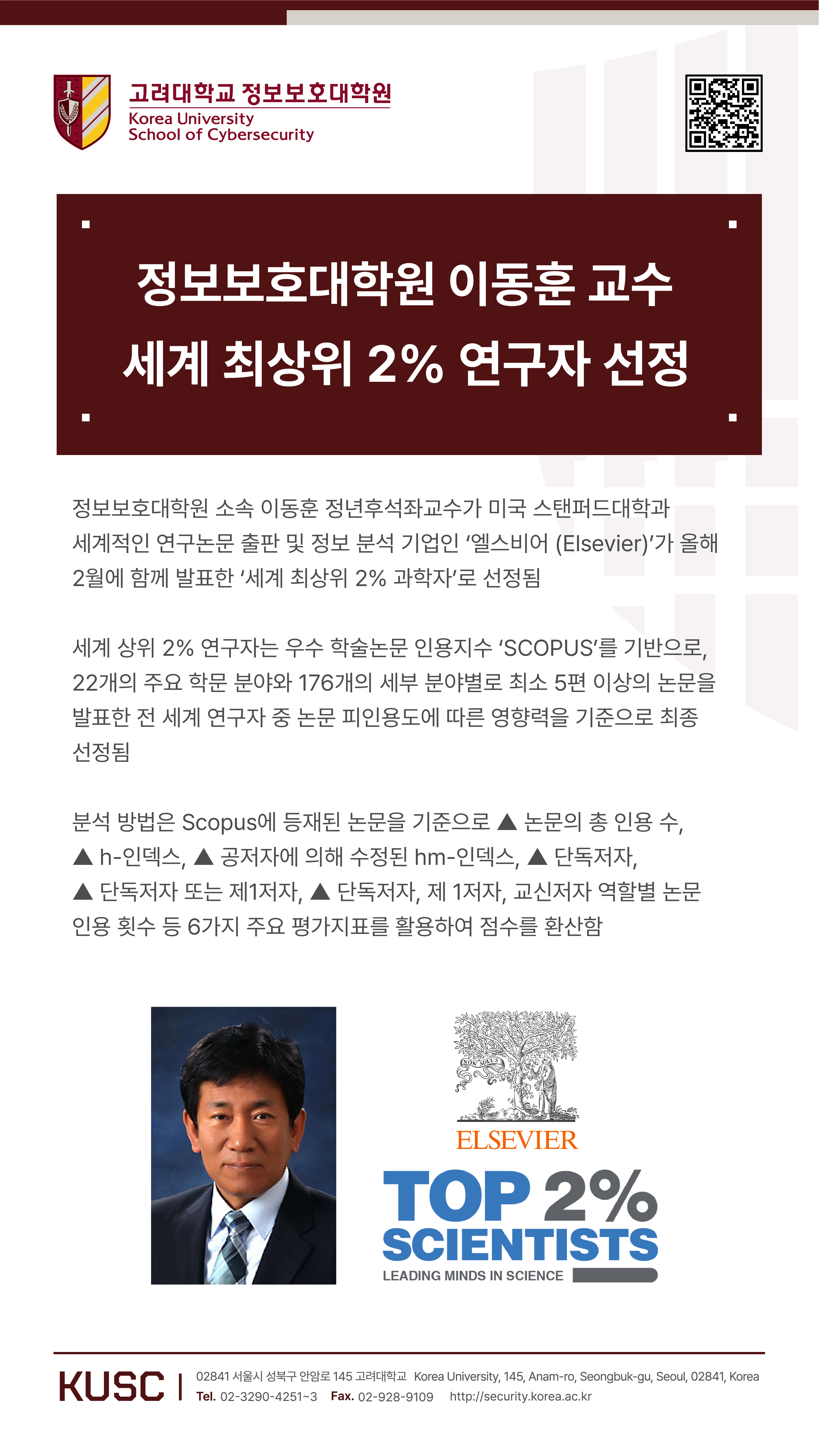 이동훈 정년후석좌교수, 세계 최상위 2% 연구자 선정
