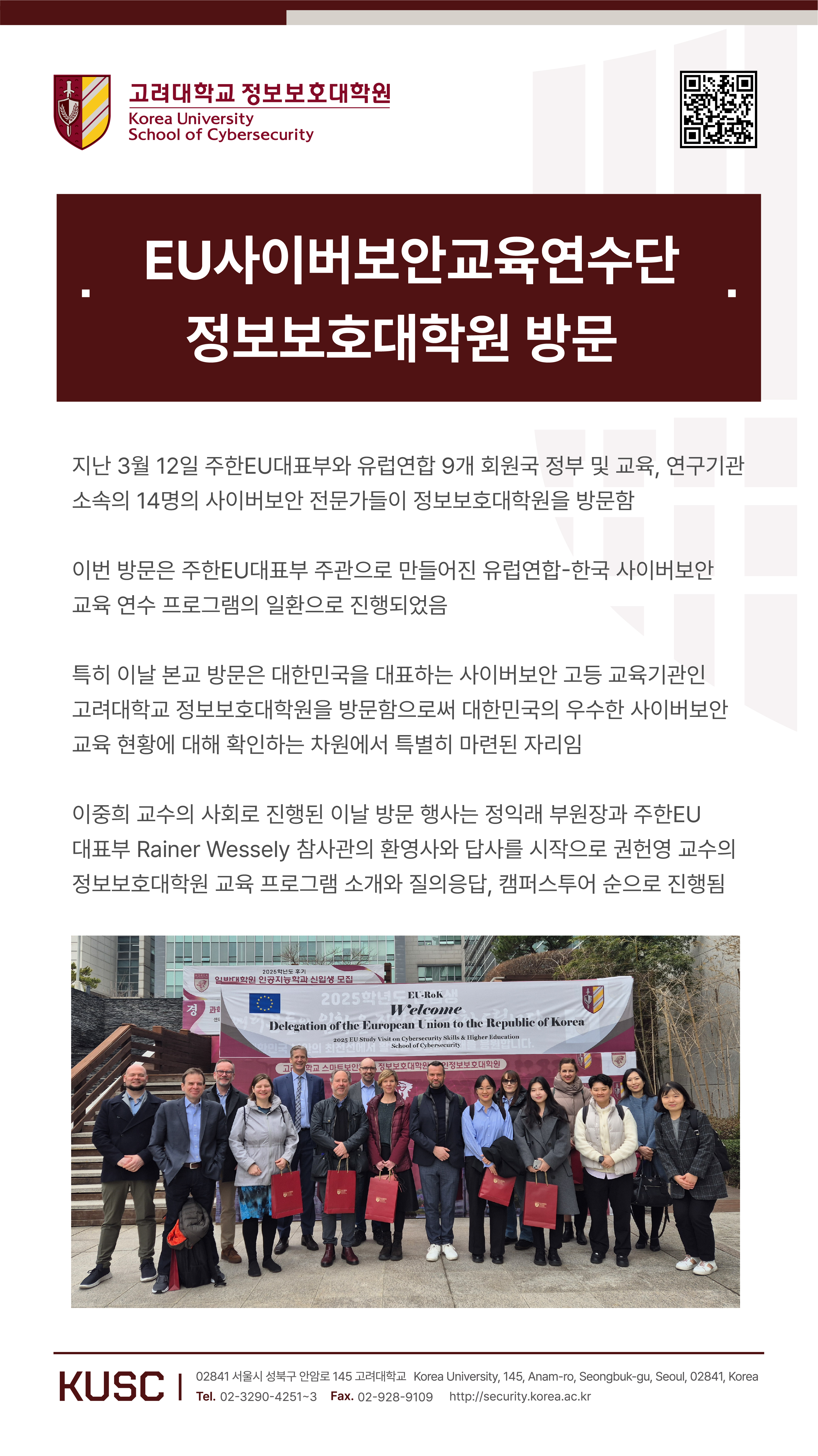 EU사이버보안교육연수단, 정보보호대학원 방문
