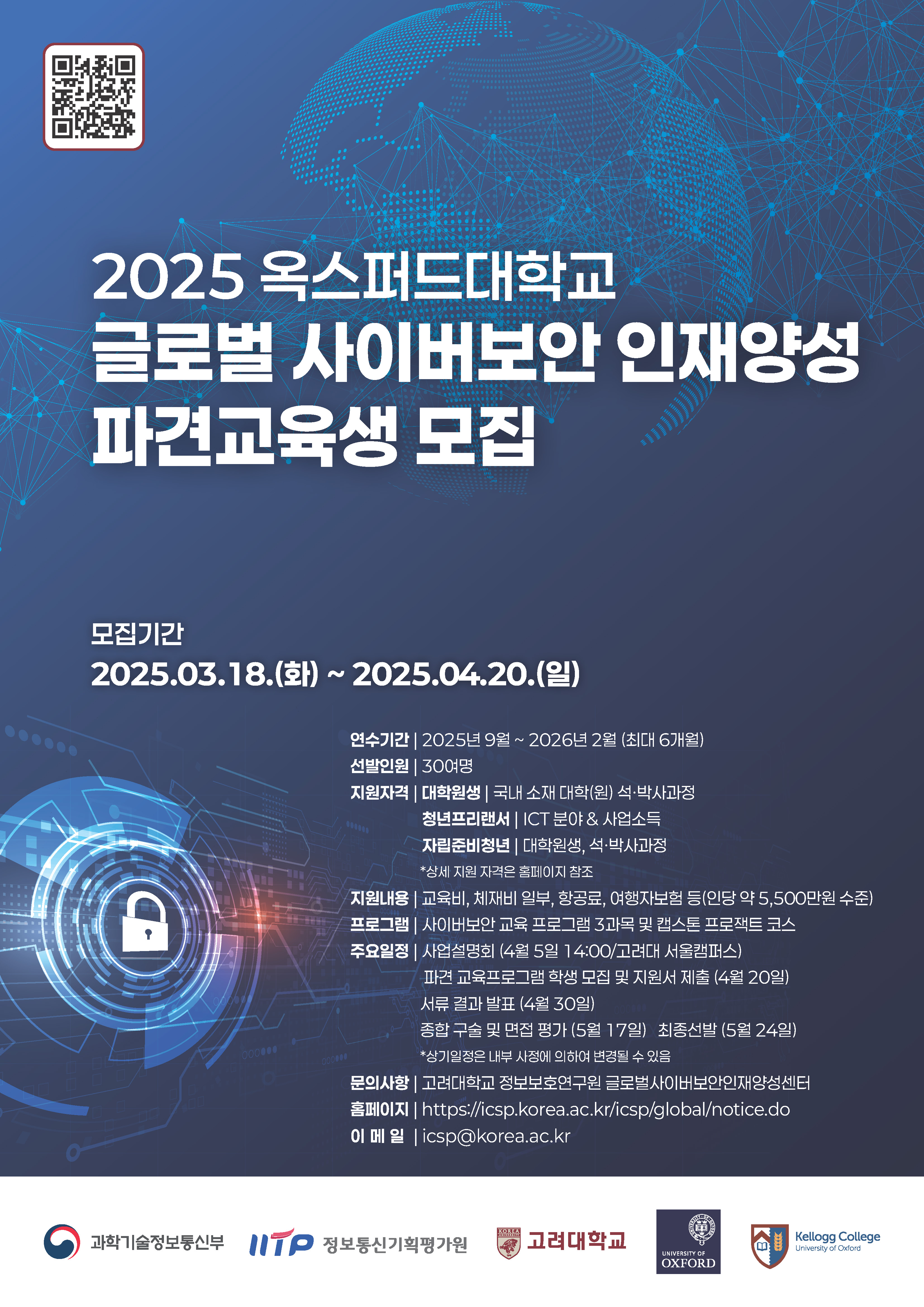 2025 옥스퍼드대학교 글로벌 사이버보안 인재양성 파견교육생 모집